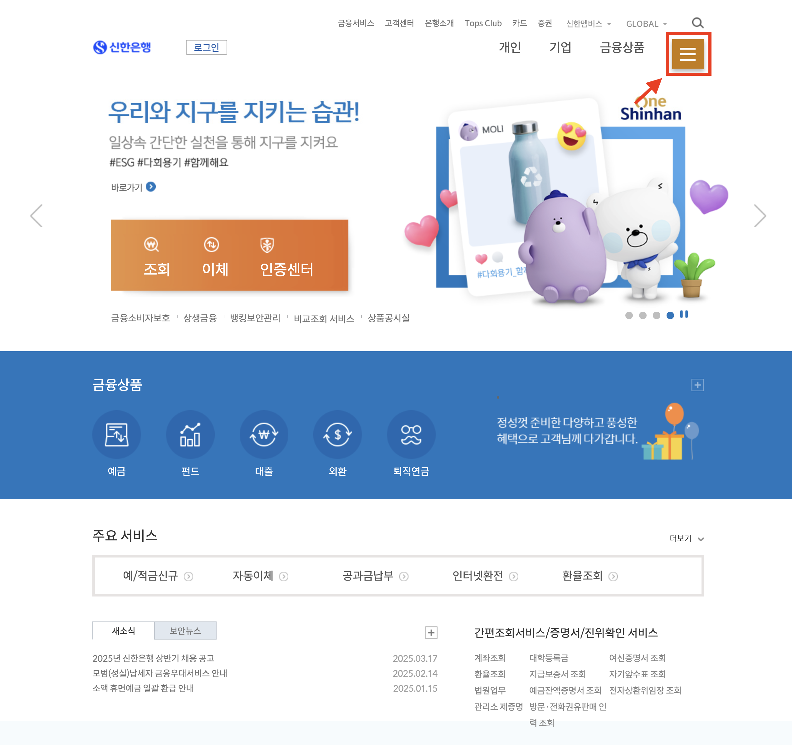 - 신한은행 홈페이지 또는 모바일 앱에 접속합니다.