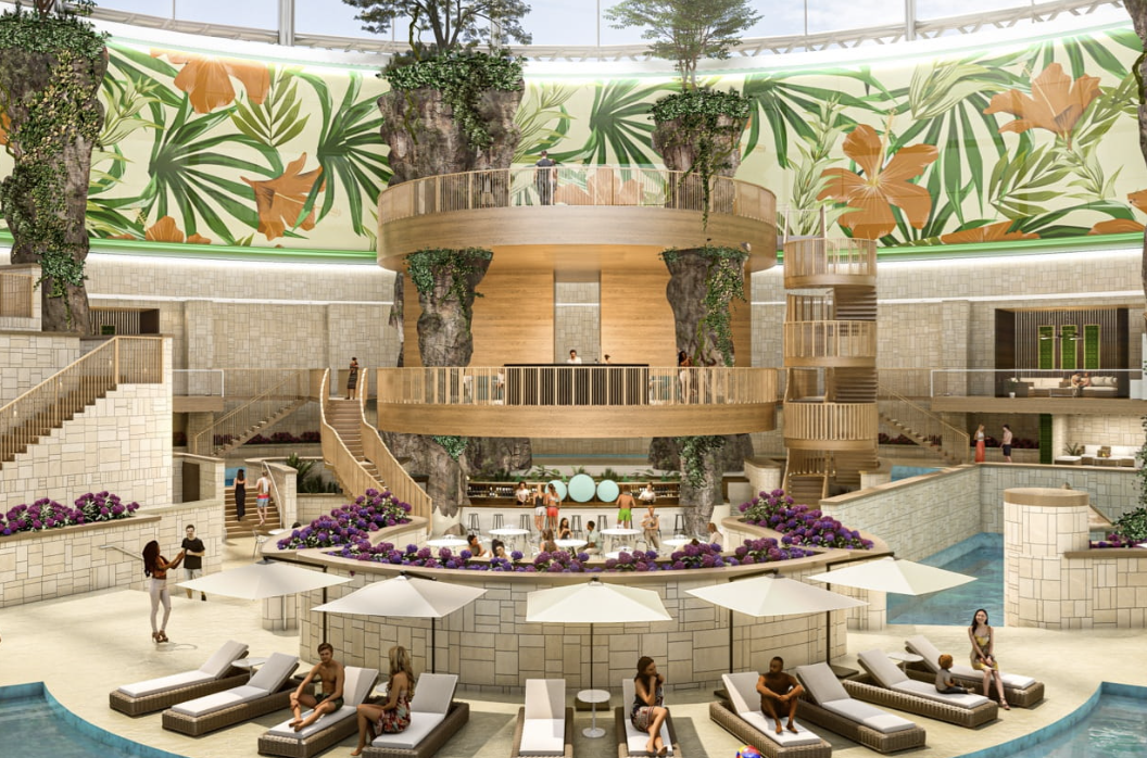 스플래시 베이는 중앙의 커다란 유리 돔 아래로 따스한 자연채광이 비춰지는 트로피컬 워터파크로, 실내에서도 1년 내내 여름을 느끼며 물놀이를 즐길 수 있습니다. 신나는 워터 슬라이드, 기나긴 유수풀인 레이지 리버(Lazy River), 키즈존 등 모든 연령대가 즐길 수 있는 워터 어트랙션을 갖추고 있습니다. 스플래시 베이 내의 상설 무대에서는 환상적인 퍼포먼스가 펼쳐집니다. 특히 무대 앞 중앙에 위치한 풀장 바닥의 높낮이가 조절되는 가변형 플로어 풀을 갖춰 때로는 물속에서, 때로는 지면에서 다양한 방식으로 공연을 즐길 수 있습니다. 그 외에도 리버사이드 바, 스플래시 라운지에서의 맛있는 경험, 그리고 럭셔리 카바나와 프라이빗 선베드에서의 휴식은 스플래시 베이에서의 시간을 더욱 완벽하게 만들어 줍니다.